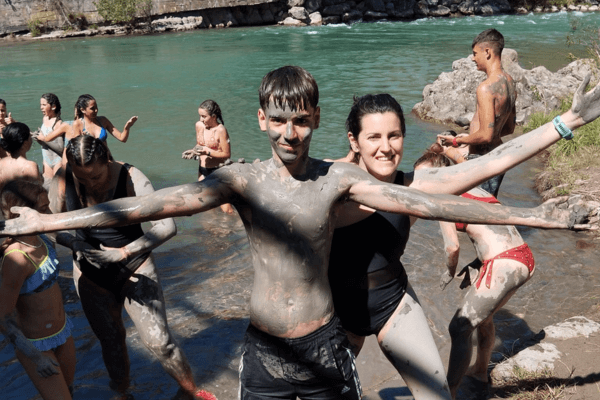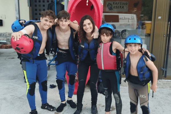Pasamos todo el día fuera. Visitamos Aínsa, donde realizamos algunos juegos, y después fuimos a comer a Santa Liestra y San Quílez, donde… ¡hicimos rafting! ¡Sí, sí, rafting! No hay nada que la diabetes nos impidiera hacer, solo teníamos estar bien preparados.