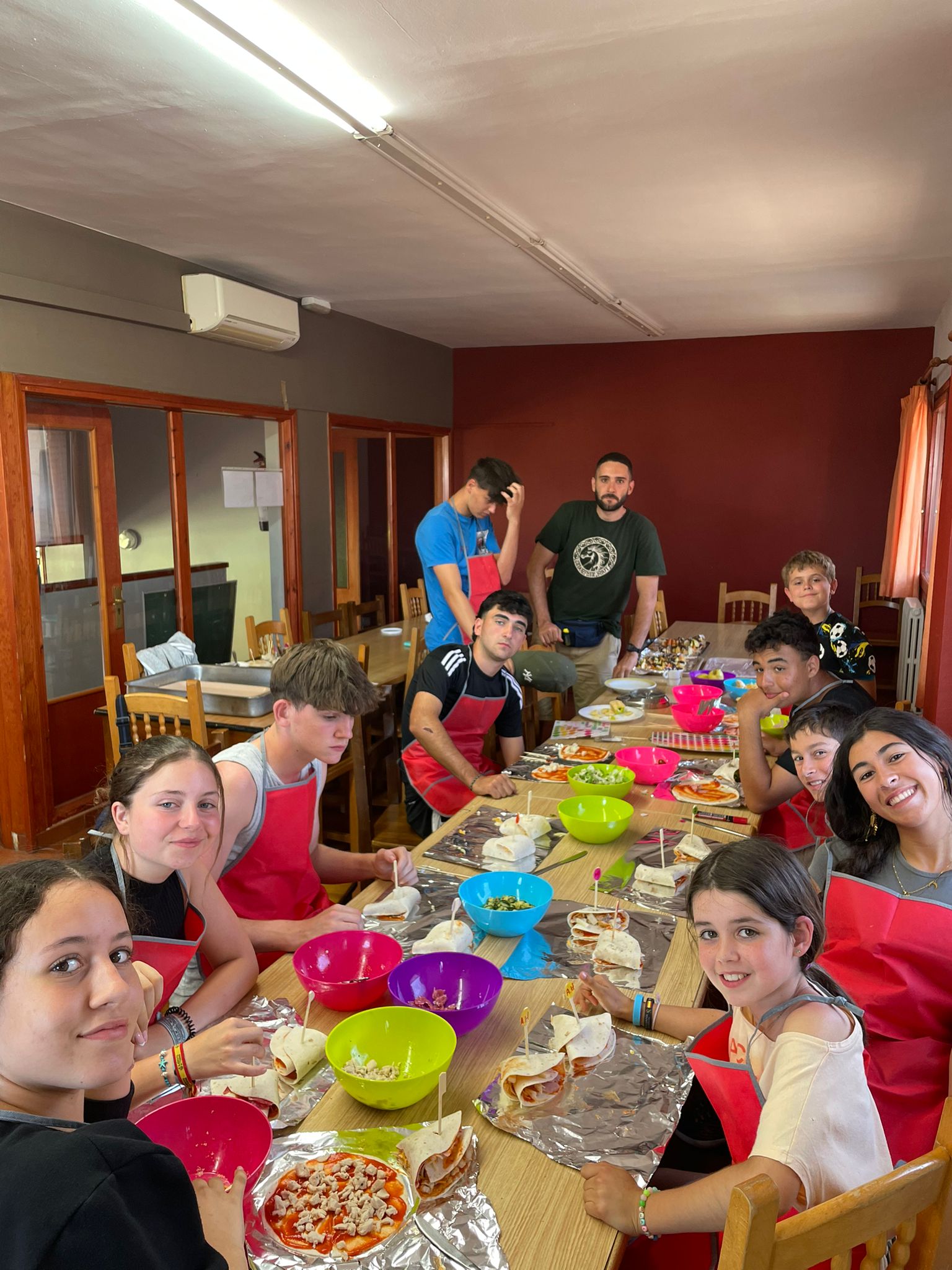 Para reponer fuerzas, hemos comido unas ricas lentejas y patatas gajo. Luego hemos tenido tiempo libre, mientras algunos preparaban el “Masterchef”: wraps de trigo y un postre delicioso de brochetas de fruta con chocolate.
