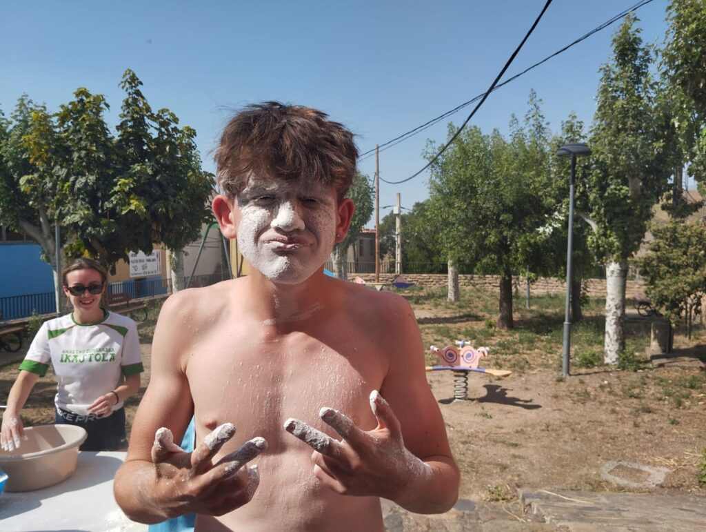 Antes de comer, un grupo ha pesado los alimentos para calcular las raciones, y hemos celebrado el clásico concurso de sandía… ¡sin manos! Tras la comida y un descanso, han llegado los juegos patronales por equipos, seguidos de otro autocontrol y una rica merienda con bocadillo y fruta.